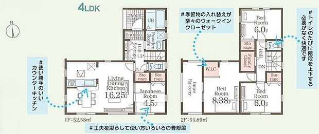 | 間取り | 4LDK 間取り内訳:リビングダイニングキッチン 16.2帖(1階)・和室 4.5畳(1階)・洋室 8.3帖(2階)・洋室 6帖(2階)・洋室 6帖(2階) |