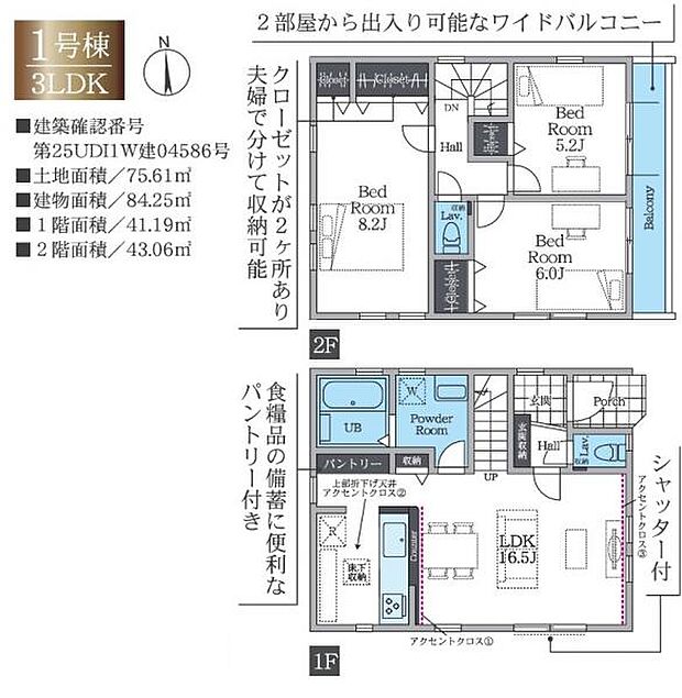 | 間取り | 3LDK 間取り内訳:リビングダイニングキッチン 16.5帖(1階)・洋室 8.2帖(2階)・洋室 6帖(2階)・洋室 5.2帖(2階) |