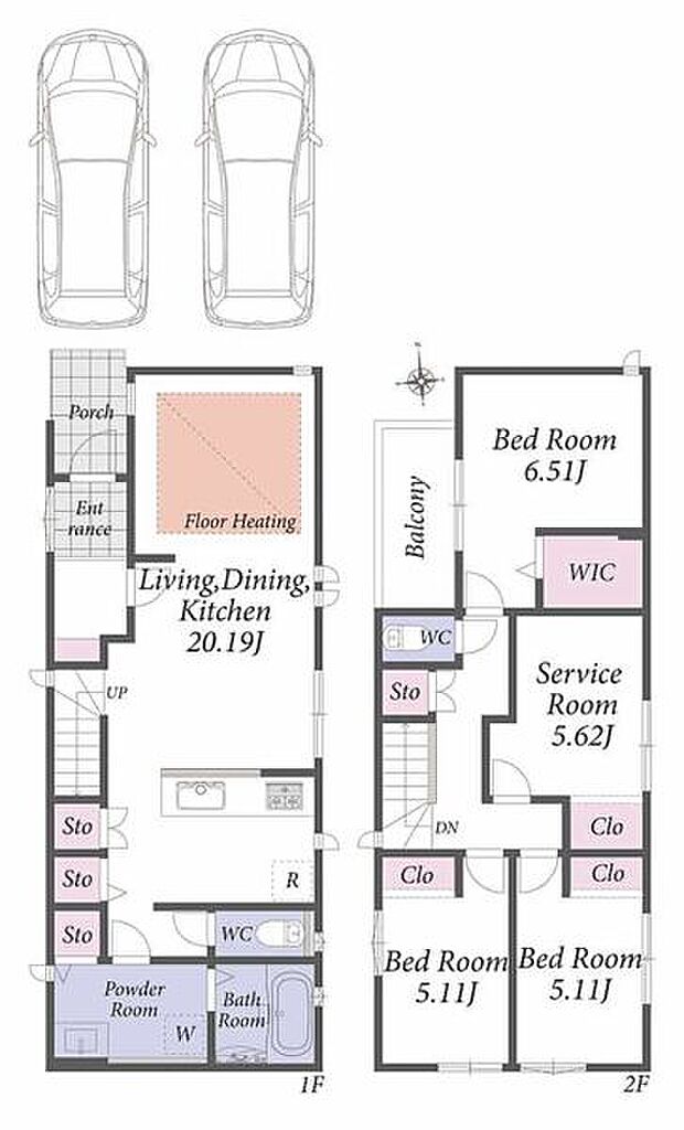 並列駐車2台可能。食洗機や浴室乾燥機等の設備が充実した新築分譲住宅です。