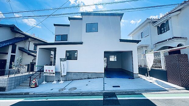 土地の仕入れから設計・施工・仕上げに至るまで一貫して自社グループで取り組んでいる妥協しない家づくり。この建売住宅の魅力です。今回はガレージハウスのデザイナー住宅。ZEH水準の高気密高断熱住宅 住まう方すべてが快適に過ごせるよう、各所にたっぷりのゆとりと収納スペースをレイアウト。シューズインクローゼット、ウォークインクローゼット×2、パントリー。 機能性とデザイン性を兼ねそろえた理想の住まい。美しい外観やくつろぎの室内空間にふさわしい素材・形・色彩、上質感に満ちております。(床暖房、浴室乾燥暖房付きユニットバス、食洗器付きシステムキッチン。)