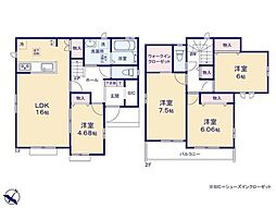 | 間取り | 4LDK 間取り内訳:リビングダイニングキッチン 16.2帖(1階)・洋室 5.5帖(1階)・洋室 6帖(2階)・洋室 6帖(2階)・洋室 7.7帖(2階) |