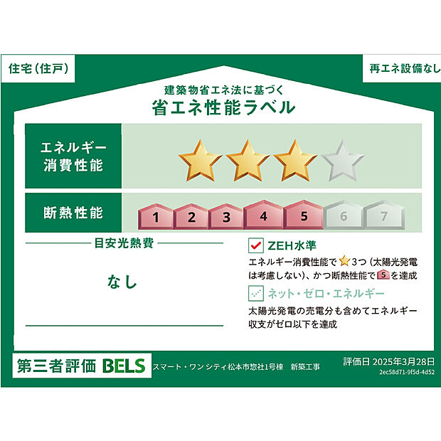 星マークの数が多いほどエネルギー消費性能が高いことを示しています。再エネ設備のない住宅は★0~★4の5段階評価、再エネ設備がある住宅は★0~★6の7段階評価となります。