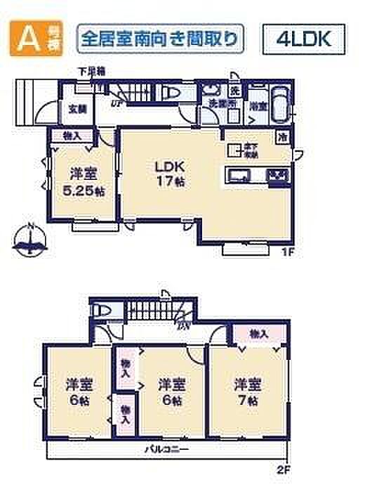 ◆合わせて22帖越えになる17帖リビング◆陽当たりよく広々過ごせる2階全室6帖以上◆居室収納つき!