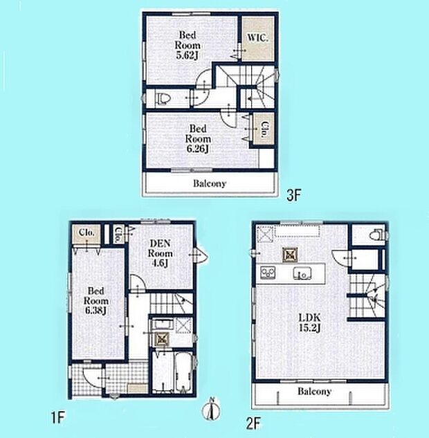 | 間取り | 3SLDK 間取り内訳:リビングダイニングキッチン 15.2帖・洋室 6.3帖・洋室 6.2帖・洋室 5.6帖・収納 4.6帖 |