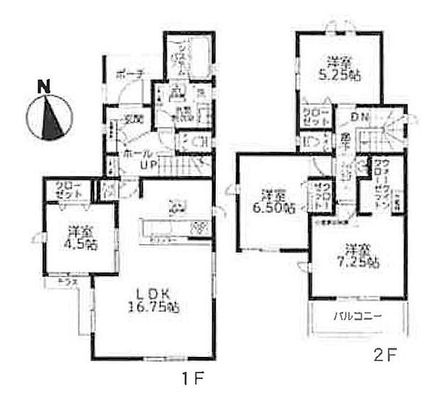 | 間取り | 4LDK 間取り内訳:リビングダイニングキッチン 16.7帖(1階)・洋室 4.5帖(1階)・洋室 6.5帖(2階)・洋室 7.2帖(2階)・洋室 5.2帖(2階) |