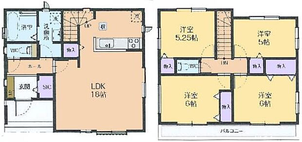 | 間取り | 4LDK 間取り内訳:リビングダイニングキッチン 18帖・洋室 5.2帖・洋室 6帖・洋室 5帖・洋室 6帖 |