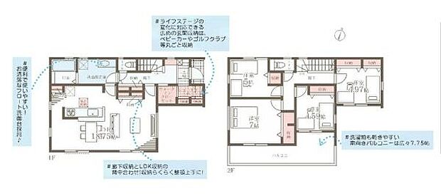 | 間取り | 4LDK 間取り内訳:リビングダイニングキッチン 18.7帖(1階)・洋室 5帖(2階)・洋室 7帖(2階)・洋室 4.5帖(2階)・洋室 4.9帖(2階) |
