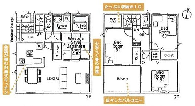 | 間取り | 4LDK 間取り内訳:リビングダイニングキッチン 18帖(1階)・和室 4.5畳(1階)・洋室 6帖(2階)・洋室 6帖(2階)・洋室 7.5帖(2階) |