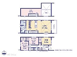 | 間取り | 1LDK(+2S) 間取り内訳:洋室 5.6帖・収納 5.6帖・収納 5.2帖・リビングダイニングキッチン 21.5帖 |