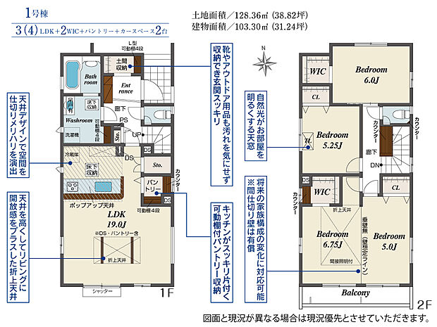 | 建物面積 | 103.30m2(約31.24坪)~104.06m2(約31.47坪) | ||