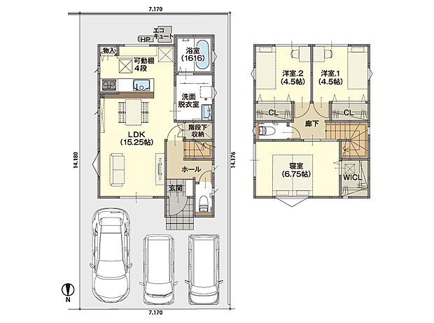 • 「建築条件付き土地」の「建物プラン例」は、土地購入者の設計プランの一例であり、プランの採用可否は任意です。