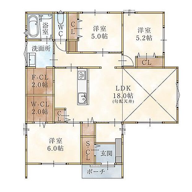 間取り内訳:その他 18帖・洋室 6帖・洋室 5.2帖・洋室 5帖