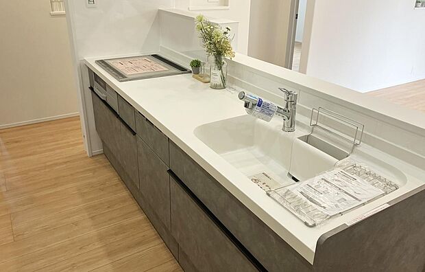 ナチュラルモダンな雰囲気の外観!玄関ドアが引戸なので開閉に力がいらず幅広い世代に優しい仕様です♪シューズクローゼット・ウォークインクローゼット・ファミリークローゼット完備でスッキリ片付けやすい間取り!