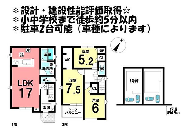 ■設計・建設性能評価取得■駐車2台可■小中学校まで徒歩約5分以内■全居室収納■南東向き