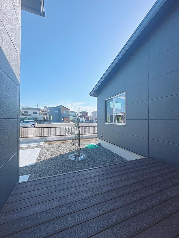 ブラックを基調としたシックな外観!シューズクローゼット・ウォークインクローゼット・パントリー完備で家全体スッキリ片付く間取り。ロフト・ウッドデッキがあり使い方を想像するだけでワクワクする空間が魅力!