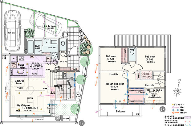 • 間取り 2LDK(3・4LDK対応可※オプション)+ステージリビング+ユーティリティ+ウォークスルークロゼットコーナー+土間収納(棚)+パントリー+リネン棚 ~ 4LDK+土間収納+パントリー+リネン庫+ウォークインクロゼットコーナー