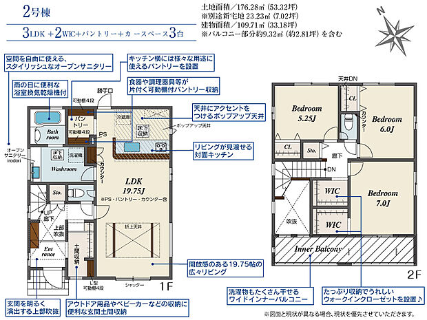 | 土地面積 | 176.25m2(約53.31坪)~176.28m2(約53.32坪) | ||
