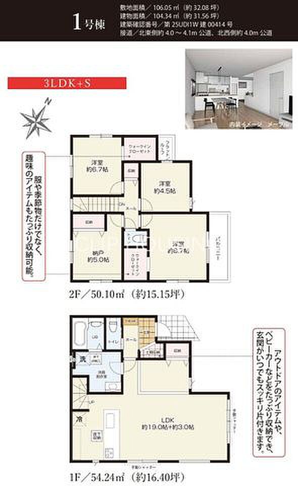 | 間取り | 3SLDK 間取り内訳:リビングダイニングキッチン 22帖(1階)・洋室 8.7帖(2階)・洋室 6.7帖(2階)・洋室 4.5帖(2階)・収納 5帖(2階) |