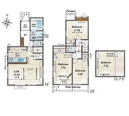 全2棟現場/3LDK+納戸3.1帖/カースペース1台可/主寝室7帖/便利な2路線2駅利用可