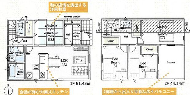 | 間取り | 4LDK 間取り内訳:リビングダイニングキッチン 15帖(1階)・洋室 7.7帖(2階)・洋室 6帖(2階)x2・和室 5.2畳(1階) |