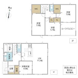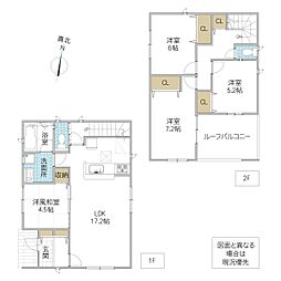 | 間取り | 4LDK 間取り内訳:リビングダイニングキッチン 16.5帖(1階)・和室 4.5畳(1階)・洋室 5帖(2階)・洋室 6.2帖(2階)・洋室 8.2帖(2階) |