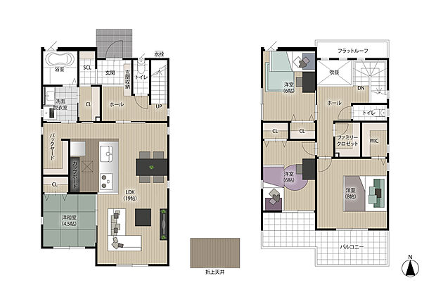 家族と会話しながらお料理ができるペニンシュラタイプの対面式キッチン・食器洗い乾燥機などうれしい設備が充実! SIC・WICなど豊富な収納で荷物が増えがちな子育て家族を応援 省令準耐火仕様で安心安全、火災保険もお得です!