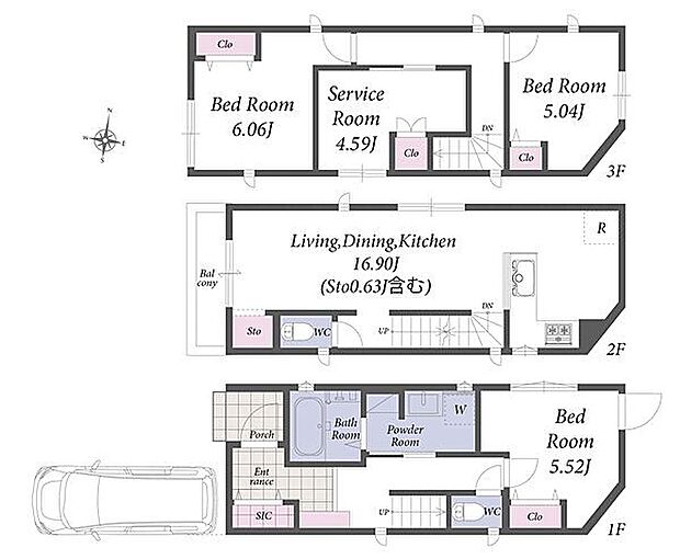 | 間取り | 3LDK+S~4LDK | 建物階 | 木造、地上2~3階建て |
