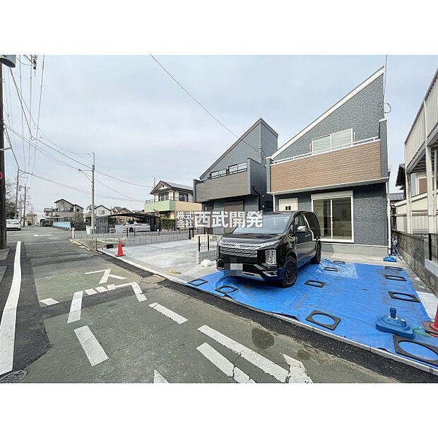 LDK約15.25帖の対面キッチンで開放感・通風良好 /カースペース並列2台(車種による)/全居室フローリング