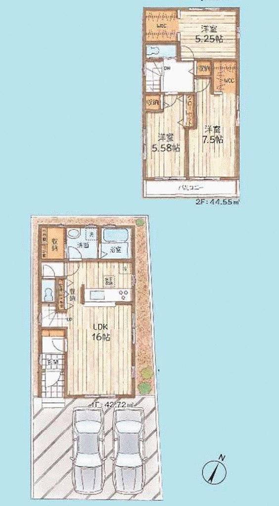 • 「建築条件付き土地」の「建物プラン例」は、土地購入者の設計プランの一例であり、プランの採用可否は任意です。