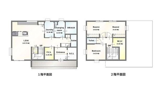 | 間取り | 2LDK 間取り内訳:リビングダイニングキッチン 15.7帖(1階)・洋室 9帖(1階)・洋室 4.5帖(1階) |