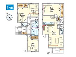 | 間取り | 3LDK 間取り内訳:リビングダイニングキッチン 17.2帖(1階)・洋室 9.1帖(2階)・洋室 6帖(2階)・洋室 4.9帖(2階) |