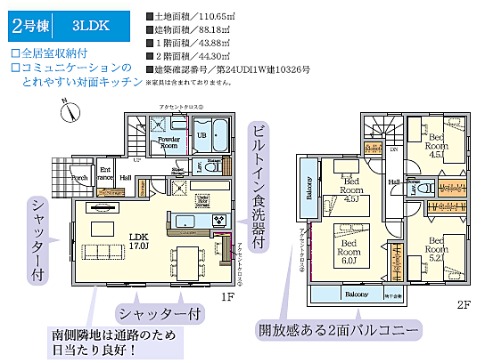 | 間取り | 3LDK 間取り内訳:リビングダイニングキッチン 17帖(1階)・洋室 10.5帖(2階)・洋室 5.2帖(2階)・洋室 4.5帖(2階) |