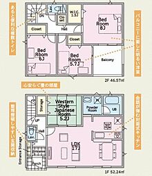 | 間取り | 4LDK 間取り内訳:リビングダイニングキッチン 15帖(1階)・和室 6畳(1階)・洋室 4.5帖(2階)・洋室 9帖(2階)・洋室 7.5帖(2階) |