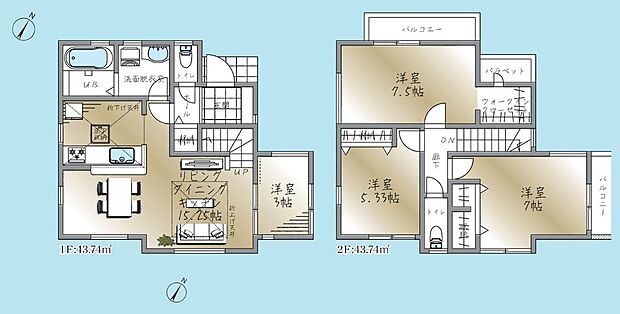 | 建物面積 | 87.48m2・105.30m2 | ||