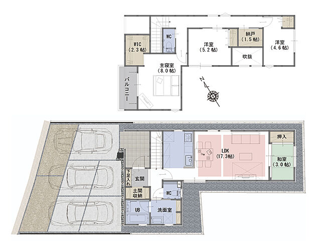 | 土地面積 | 129.50m2(B号棟)~138.06m2(A号棟) | ||