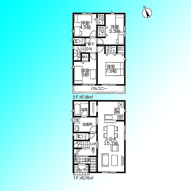 | 間取り | 4LDK 間取り内訳:洋室 5.7帖・洋室 6帖・洋室 5帖・洋室 5.2帖・リビングダイニングキッチン 19.5帖 |
