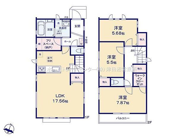 | 間取り | 2LDK+S(納戸)~3LDK+S(納戸) | 建物階 | 木造サイディン貼りアスファルトシングル造2階建て |