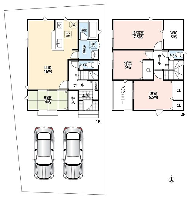 • 「建築条件付き土地」の「建物プラン例」は、土地購入者の設計プランの一例であり、プランの採用可否は任意です。