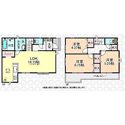 | 間取り | 2LDK 間取り内訳:洋室 4.5帖(1階)・リビングダイニングキッチン 15帖(2階)・洋室 5帖(2階) |