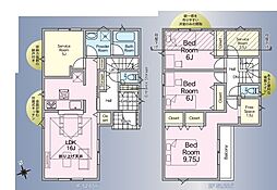 新築分譲住宅全3棟のC号棟 南東向きの明るい3LDK 収納豊富な間取り