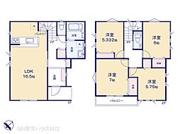 | 間取り | 4LDK 間取り内訳:リビングダイニングキッチン 16帖(1階)・和室 3畳(1階)・洋室 8.2帖(2階)・洋室 6.7帖(2階)・洋室 6帖(2階) |