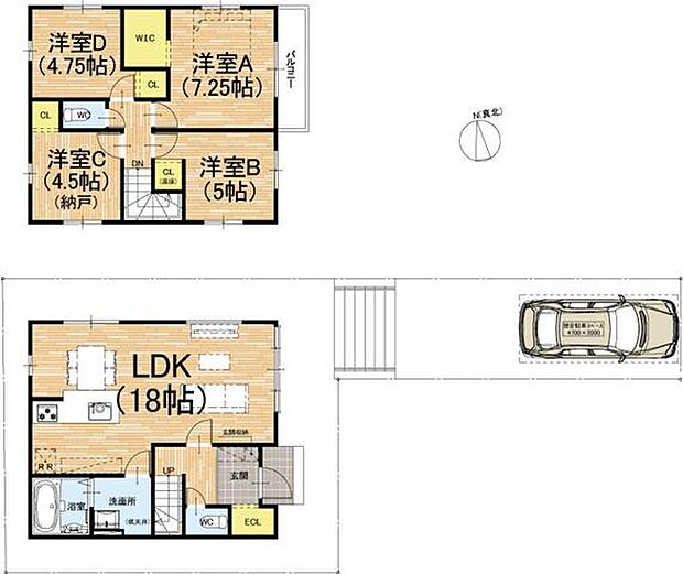 | 間取り | 3SLDK 間取り内訳:リビングダイニングキッチン 18帖・洋室 7.2帖・洋室 5帖・洋室 4.7帖・収納 4.5帖 |
