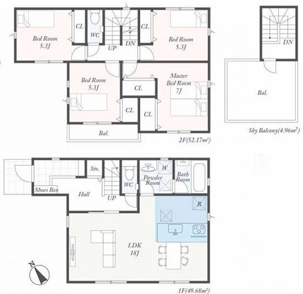 家族が集まるLDKは約18帖の大空間! 広々としたペニンシュラタイプキッチンを採用! カースペース並列2台分完備! スカイバルコニー付き!