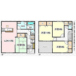 | 間取り | 4LDK 間取り内訳:洋室 5.7帖(2階)・リビングダイニングキッチン 18帖(1階)・和室 3.7畳(1階)・洋室 7帖(2階)・洋室 6帖(2階) |