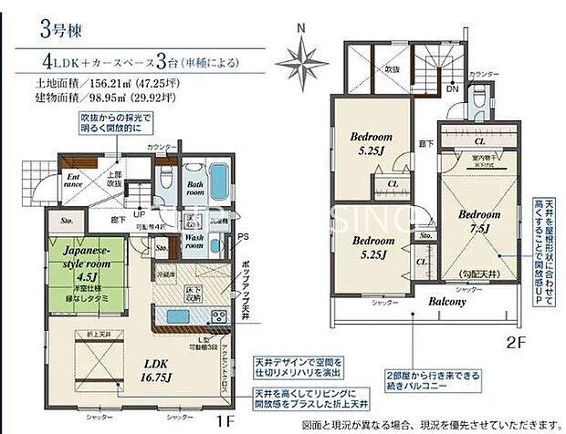 | 間取り | 4LDK 間取り内訳:リビングダイニングキッチン 16.7帖(1階)・和室 4.5畳(1階)・洋室 5.2帖(2階)・洋室 5.2帖(2階)・洋室 7.5帖(2階) |