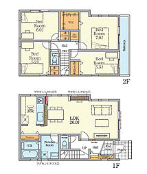 間取り内訳:リビングダイニングキッチン 20帖(1階)・洋室 5.2帖(2階)・洋室 5.5帖(2階)・洋室 6帖(2階)・洋室 7帖(2階)