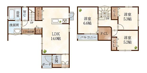 | 間取り | 3LDK 間取り内訳:その他 14帖・洋室 6帖・洋室 5.3帖・洋室 5.2帖 |