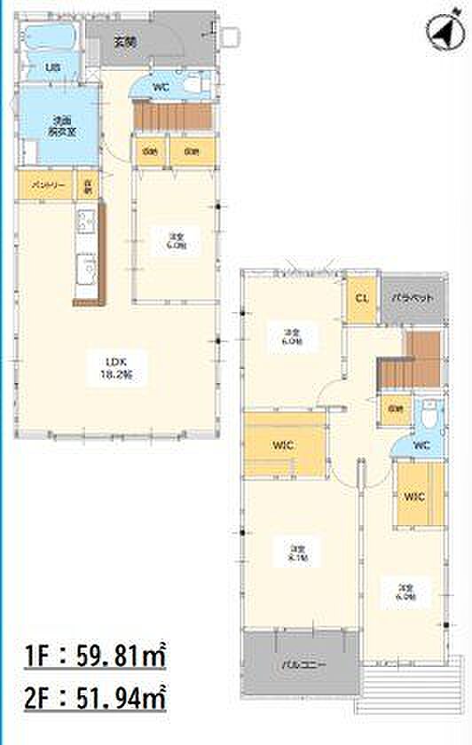 | 間取り | 4LDK 間取り内訳:洋室 6帖(2階)・洋室 8.1帖(2階)・リビングダイニングキッチン 18.2帖(1階)・洋室 5帖(1階)・洋室 6帖(2階) |