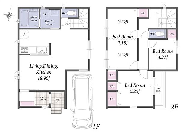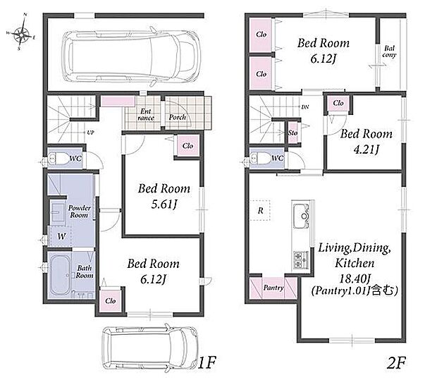 2階建て/LDK17畳以上/全居室収納付き/カースペース付きの新邸です♪