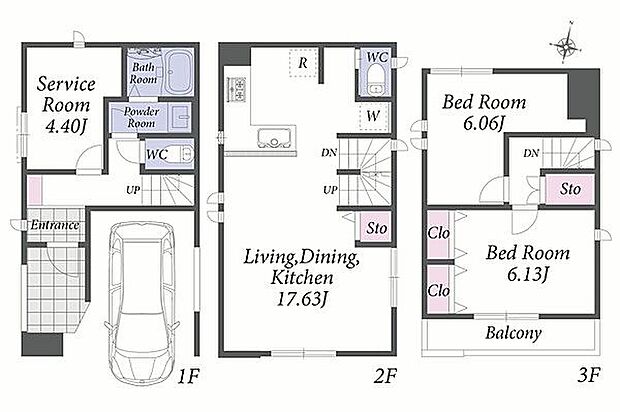 | 間取り | 2LDK+S~3LDK+S | 建物階 | 木造、地上3階建て |